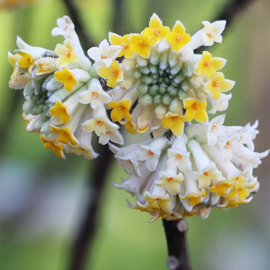 Fragrant waxy small yellow flowers appearing on barer branches in winter and very suitable for floral arrangements.